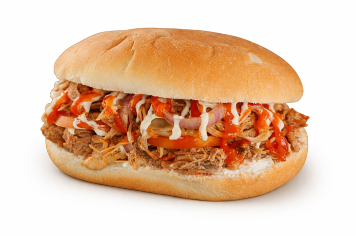 A chimi is Dominican Burger with lettuce, cabbage, ketchup, mayo and your choice of meat on two toasted buns.